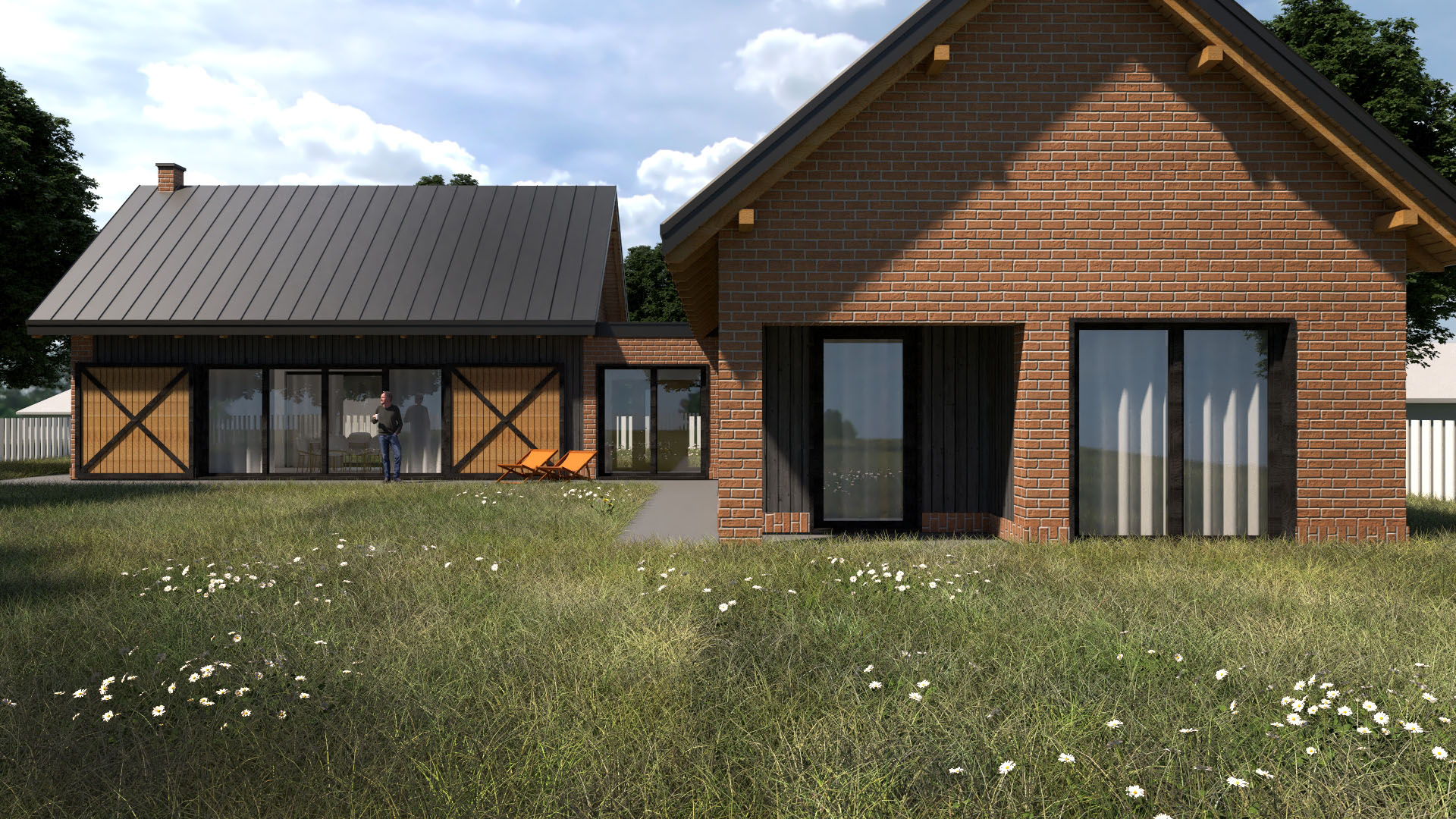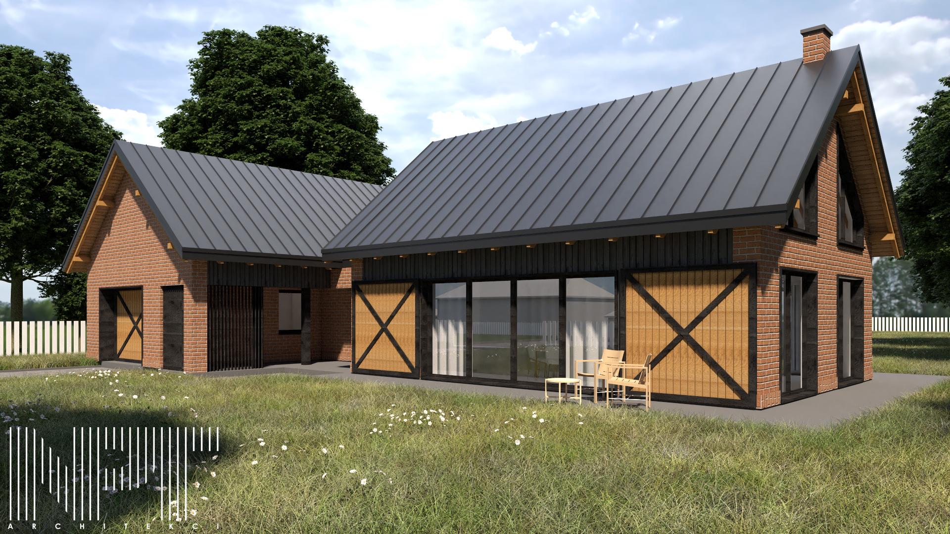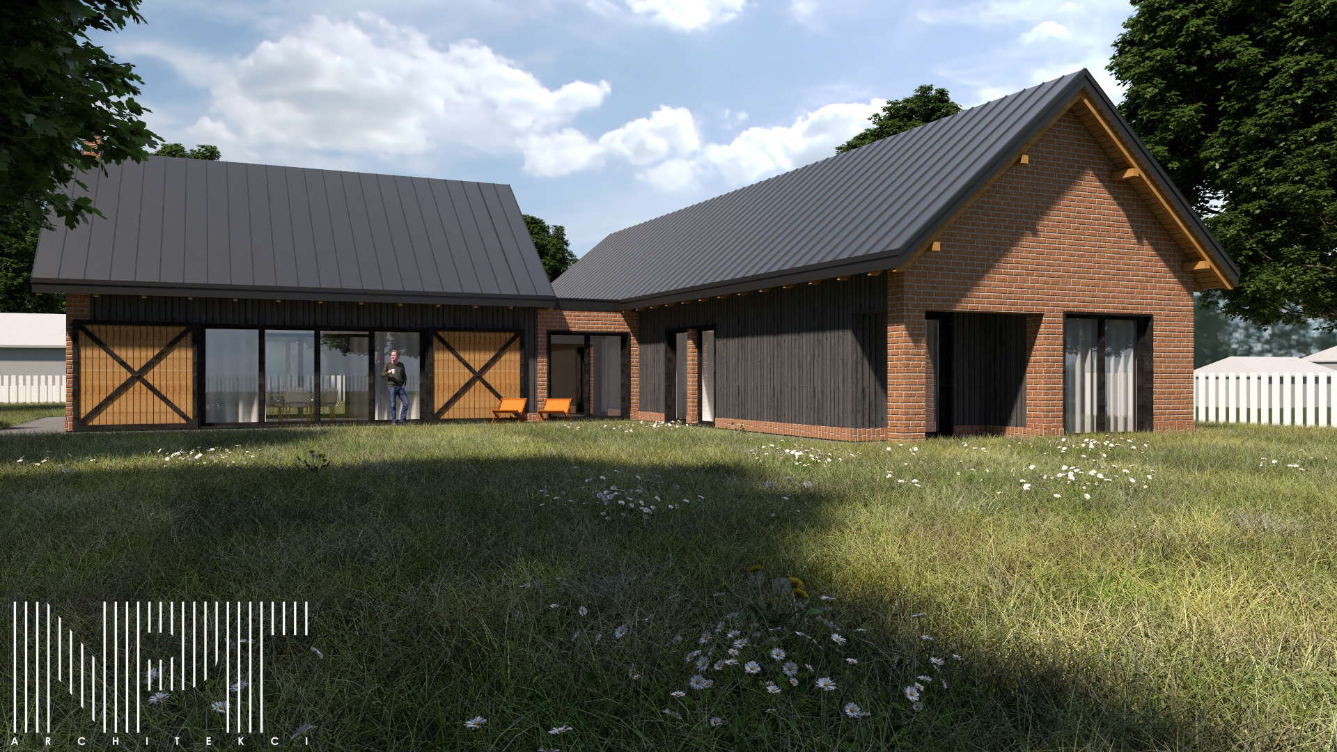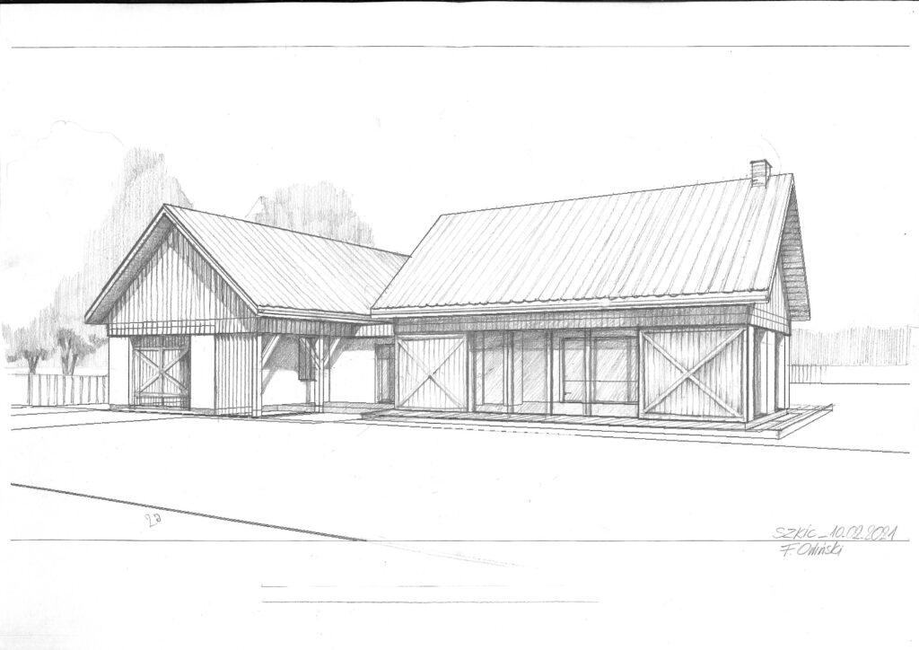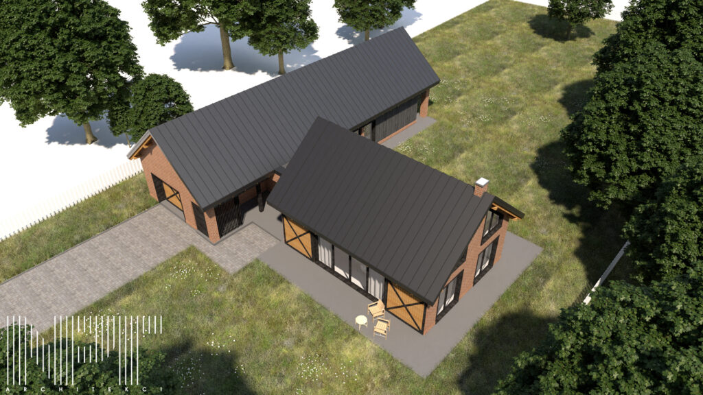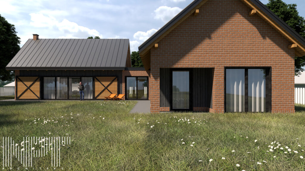 Koncepcja domu jednorodzinnego we wsi Brańszczyk. W tym projekcie staraliśmy się nawiązać do lokalnych tradycji architektonicznych, główną inspiracją było nawiązanie do zabudowy zagrodowej, która stanowi o tożsamości Brańszczyka.